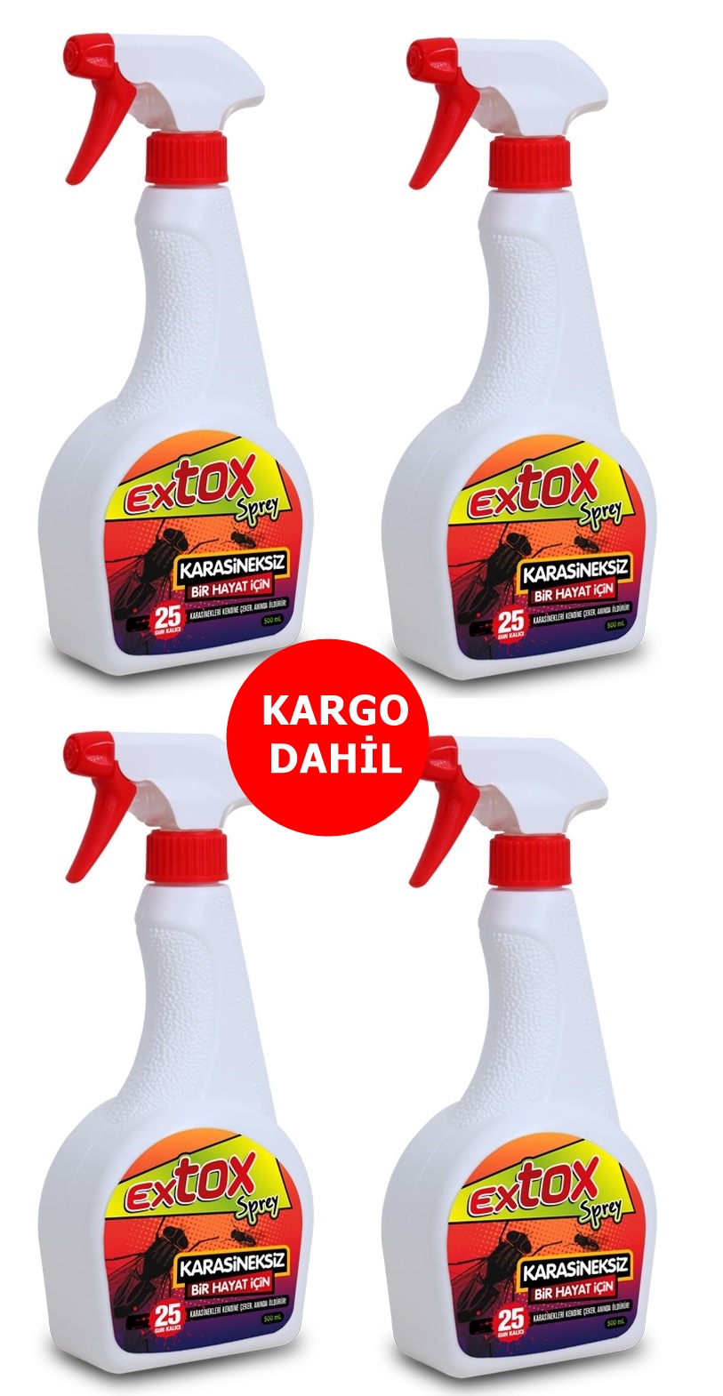 Kullanma Şekli: Kullanmadan önce ürünü iyice çalkalayınız. Sprey şişesinin üzerindeki spreyleme tetik nozulu açık konuma getirilir. Karasinek için yatay yüzeylere püskürtülerek 23 metrekarelik alana 0.5 litre uygulanır. Püskürtme işlemi bittikten sonra tetik nozulu kapalı konumuna getirilir. Ürün güvenli bir yerde orjinal ambalajında depolanır. Uygulama yapılan yerlerde direk temastan kaçınılmalıdır. Bunun dışında özel bir korunma önlemi gerektirmez. Extox Sprey kullanırken eşyanızı toplamanıza gerek yoktur. Kullanımdan 30 Dk sonra odayı en az 1 saat havalandırınız.